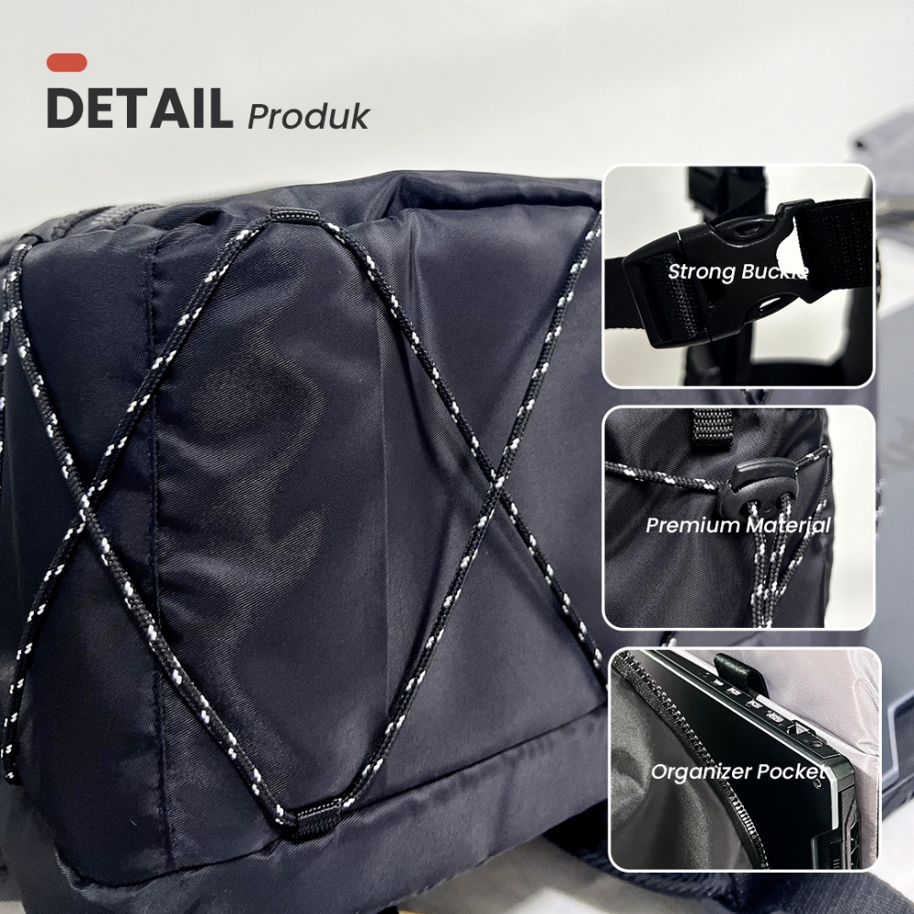 * Compartement Tambahan di depan tas menggunakan resleting kain