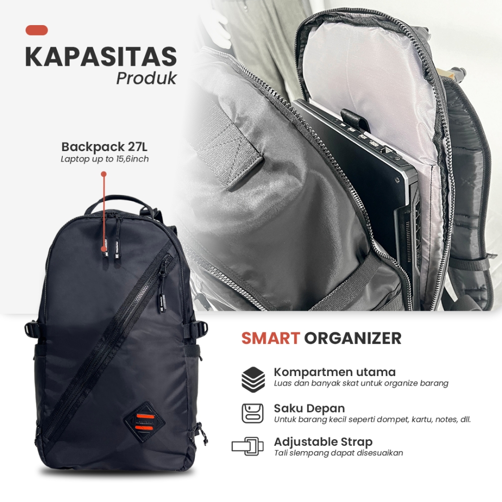 **Tas 27L, Tempat Laptop Up to 15'6 inch**